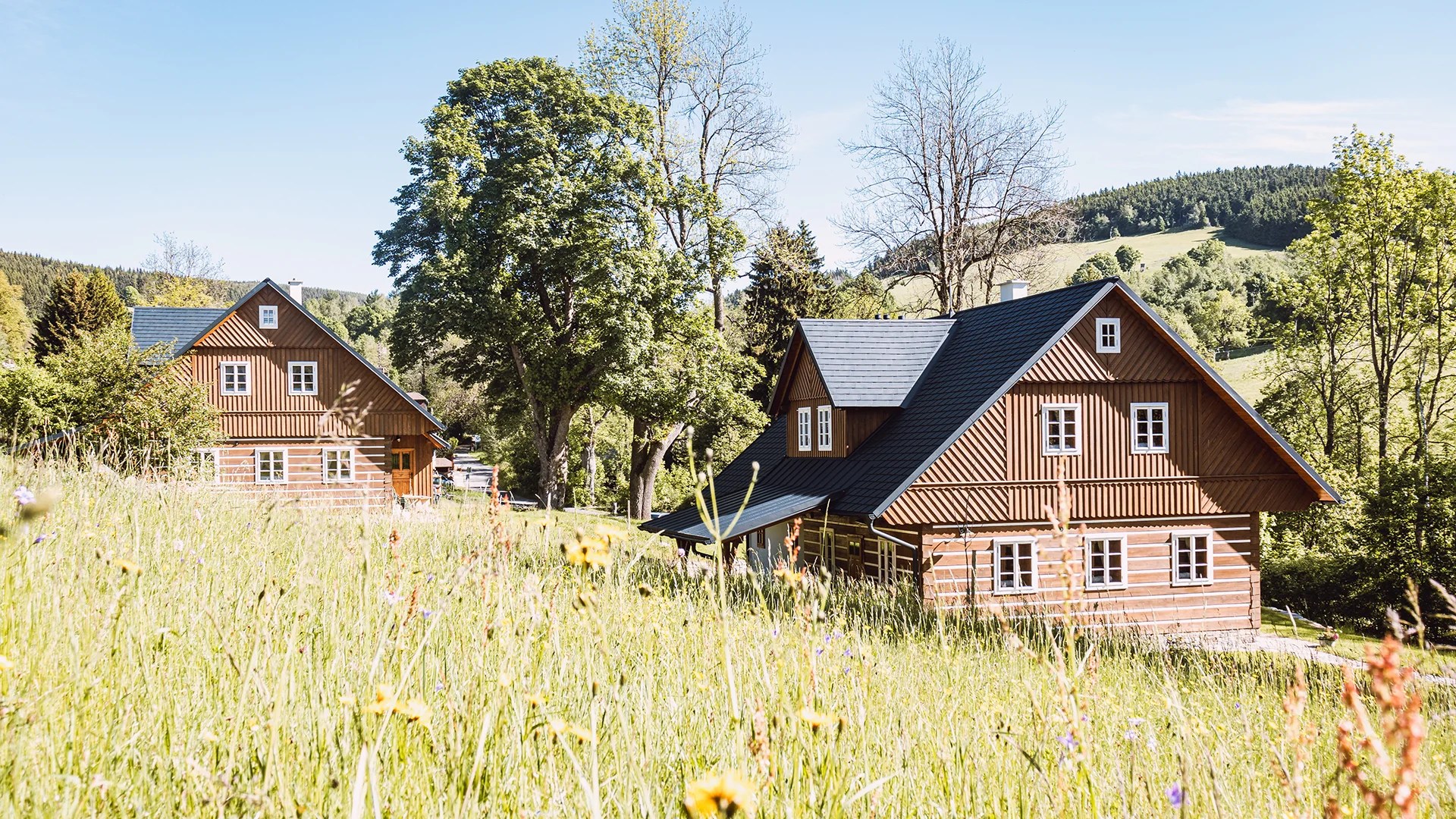 Naše chalupy byly postaveny v letech 2020-2024 na místě původního stavení, přičemž jsme se drželi tradiční architektury Krkonoš. Výsledkem jsou chalupy, které spojují pohodlí moderního bydlení s autentičností a respektem k okolní krajině.