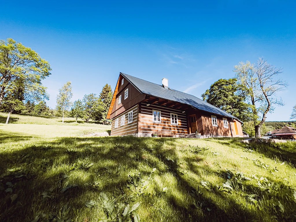 Welcome to the „Dolní“ cottage, where modern comfort meets rustic style. This cottage, a twin of the „Horní“ cottage, embodies all the features of Krkonoše architecture. The faithful imitation of log construction with dovetail joints and casement windows create an unmistakable look. At the back, you'll find a terrace, ideal for relaxation and enjoying warm summer days. Enjoy pleasant seating under the saddle roof and the typical Krkonoše gable. „Dolní“ cottage offers accommodation for up to 15 people.